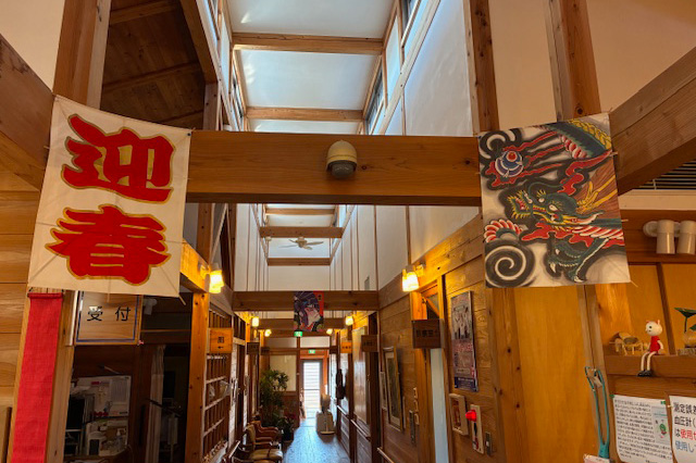 正面玄関から風除け室、受付、廊下、に至る飾りつけをしています。本当に晴れやかです。一年の始まりで気持ちが引き締まります。今年もよろしくお願いいたします。