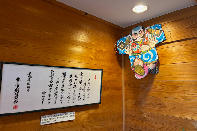 右側には「うれしいひなまつり」の歌詞、左側には「さくらさくら」の2番の歌詞が書かれた屏風を飾っています。当クリニックに通院されているS.M.様の作品です。流れるように見事な草書体の文字です。K.S.様のひな人形と一緒に飾っています。